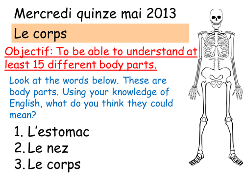 Click to rate hated it. Please let us know if there are any new label me! It features an illustration of a human body, with each part labelled in french. Listen to the audio on body parts in french and practice your pronunciation with our voice recognition tool. In this lesson, you will learn the french words for body parts, including terms for the head and face as well as body parts such as legs and hands. The word for the body in french is le corps, but why stop there?find out how to pronounce common body parts in french with this free lesson! Je me suis cassé la jambe. Dans une vidéo précédente, nous avons appris les parties du corps humain. Empty reply does not make any sense for the end user. Click share to make it public. Created by sue summersplease click here to see more of my french body parts materials.please click here to see more of my french materials.customer tip:be the first to know about my new discounts. Please let us know if the video is no longer working. Hi, there are 2 spelling mistakes: